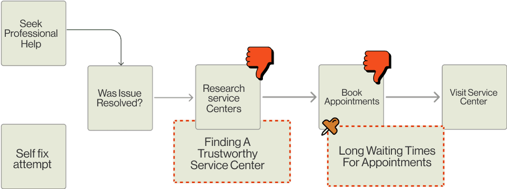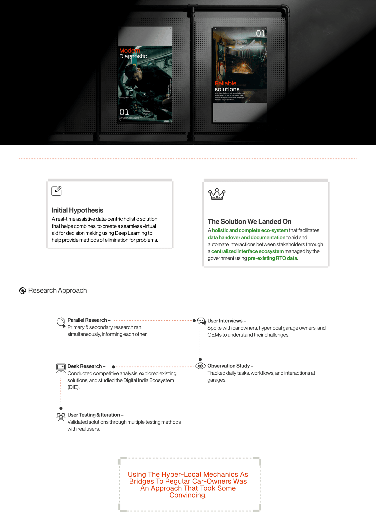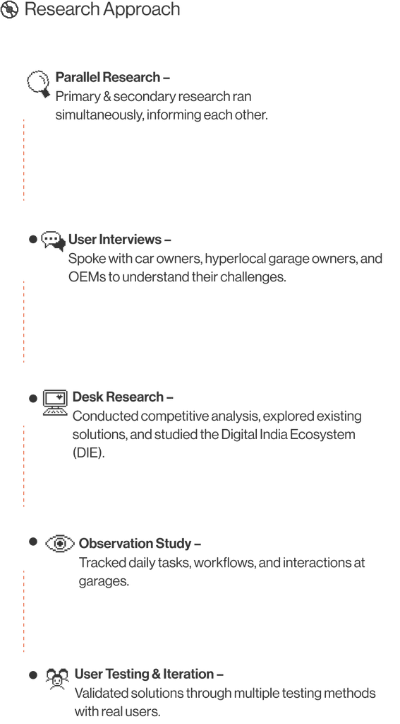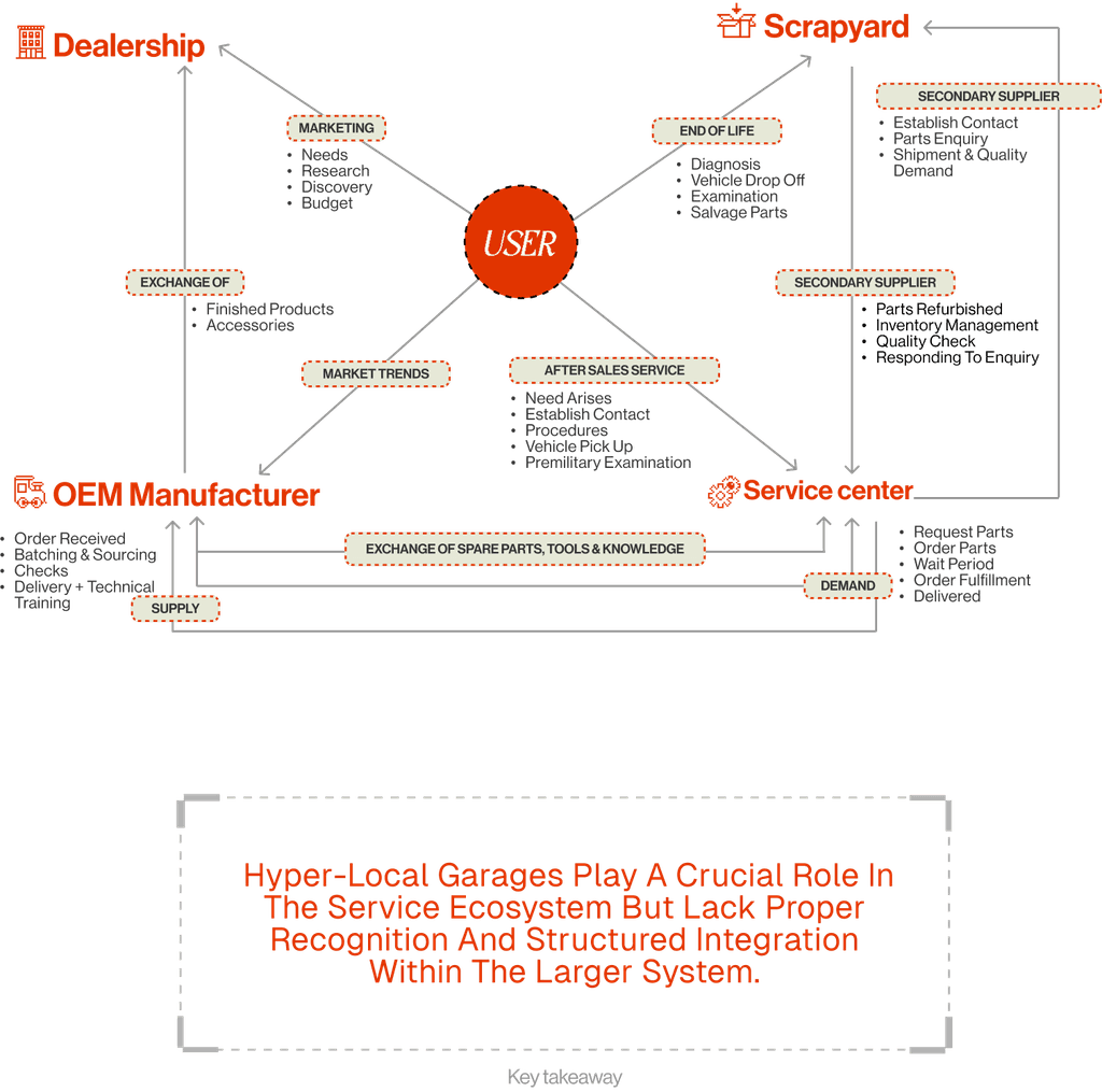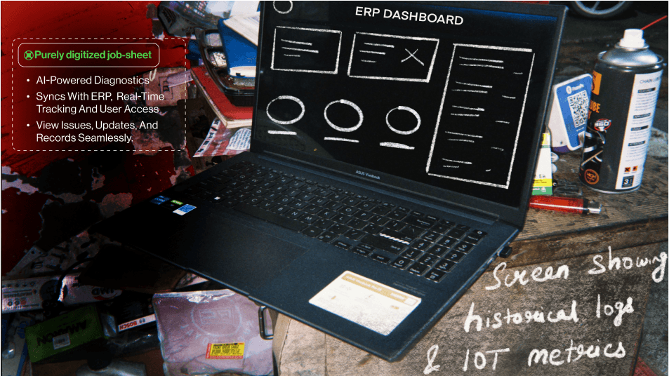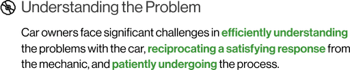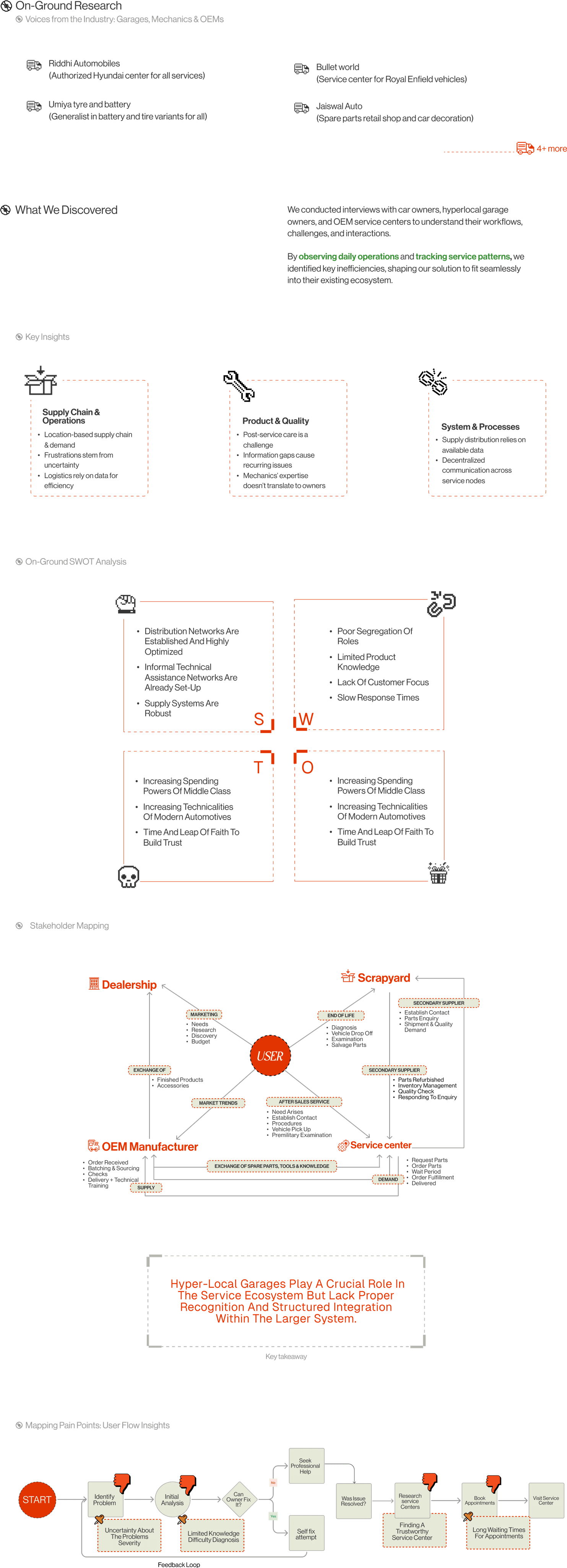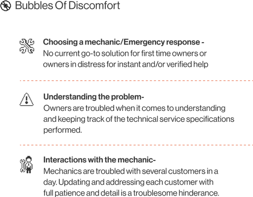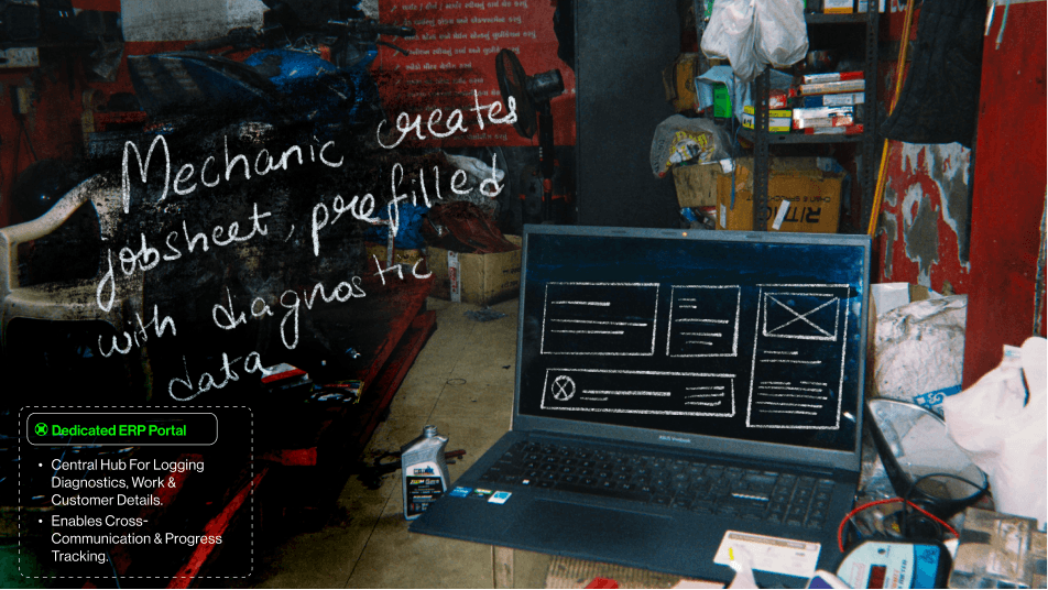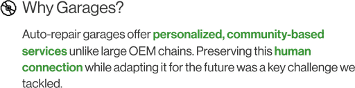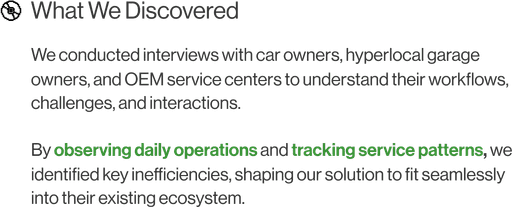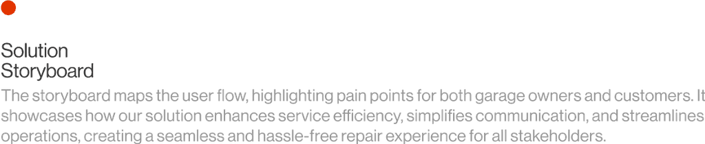The storyboard maps the user flow, highlighting pain points for both garage owners and customers. It showcases how our solution enhances service efficiency, simplifies communication, and streamlines operations, creating a seamless and hassle-free repair experience for all stakeholders.